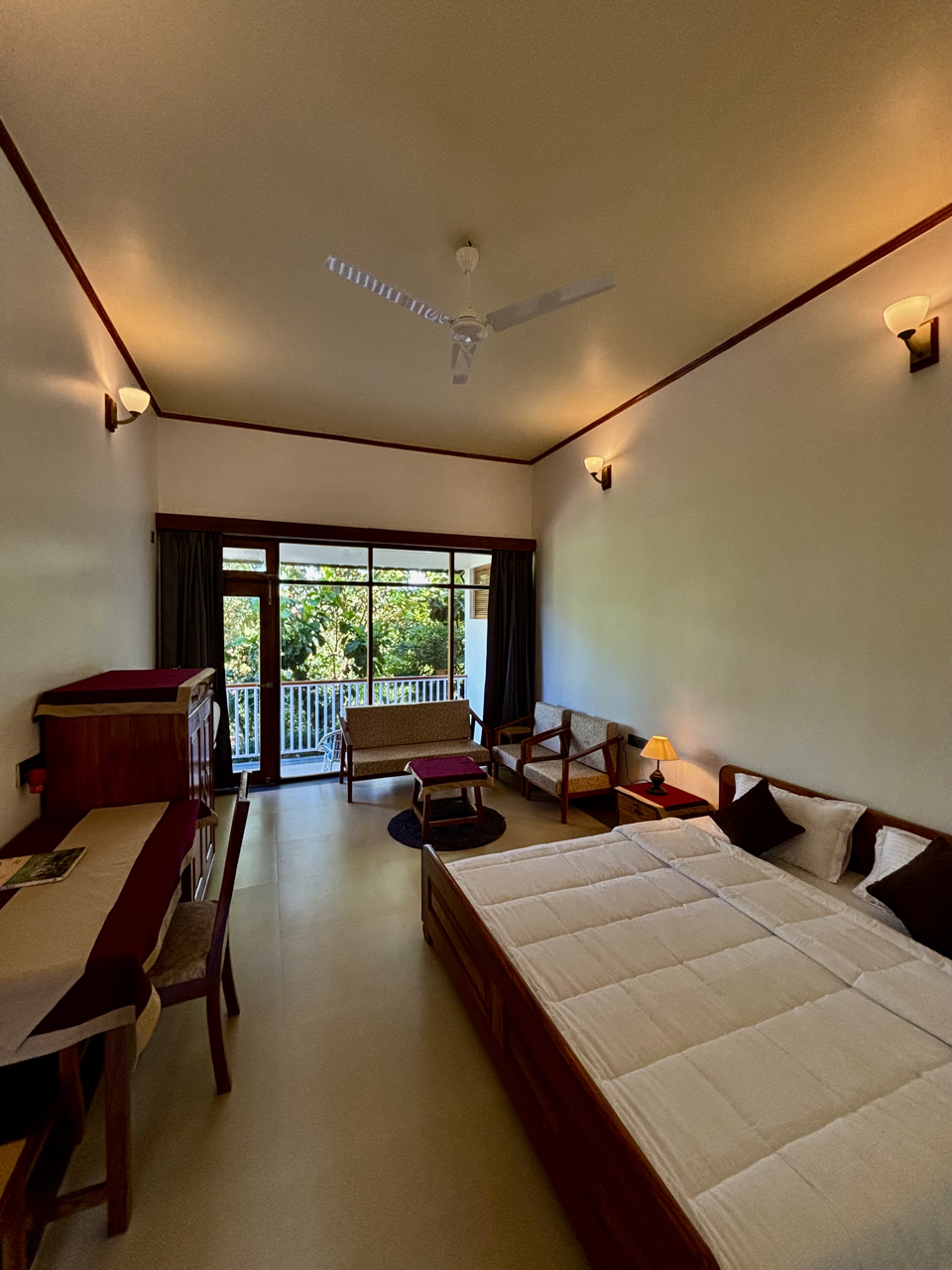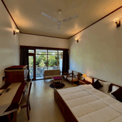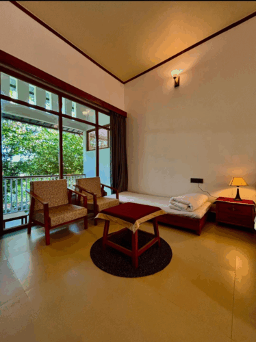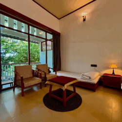 Our thoughtfully designed rooms offer a cozy, peaceful retreat surrounded by lush greenery and the gentle sounds of birdsong. Blending the rustic charm of the region with modern comforts, each room features a king-size bed with premium linens, a sofa, bedside table, spacious wardrobe with coat hangers, and a private attached bathroom with a geyser, shower, and basin mixer. The private balcony, complete with cushioned seating and a table, is perfect for enjoying morning tea, quiet reading, or simply soaking in the serene views. Whether you’re a nature lover, birdwatcher, photographer, or simply seeking a break from the city, our rooms offer the ideal mix of homely warmth and natural beauty. From the first morning chirps to peaceful starlit evenings, Bougain Valley welcomes you with the genuine warmth of Assamese hospitality and the calming embrace of nature.